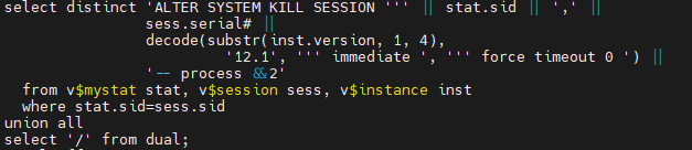 When looking at this file, I noticed it kills catcon session using a “ALTER SYSTEM KILL SESSION ‘sid, serial#’ FORCE TIMEOUT 0”, except if on Oracle 12.1, where still does “IMMEDIATE” instead: